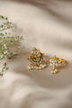 Silver alloy ring made with white stone polki, enamel and pearls and green beads . Adjustable size.