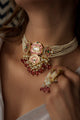 Wrap yourself in the timeless allure of our Ekaiva Necklace set, a quintessential piece that exudes grace and sophistication. Silver alloy, gold plated, stone polkis with faux pearls.Comes with traditional dori closure.