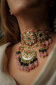 Step into a world of regal charm and contemporary allure with our Nirvana choker. Inspired by the grandeur of  Indian artistry, meticulously crafted to blend tradition with modern aesthetics. Silver alloy, gold plated, stone polkis, faux pearls. Comes with traditional dori closure.
